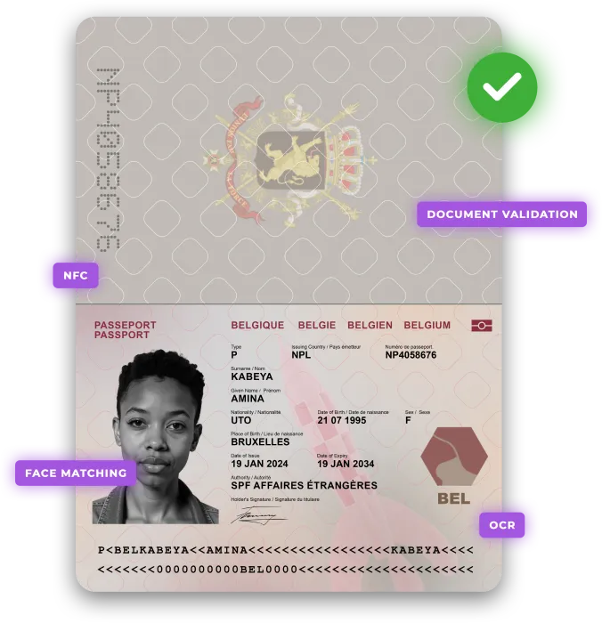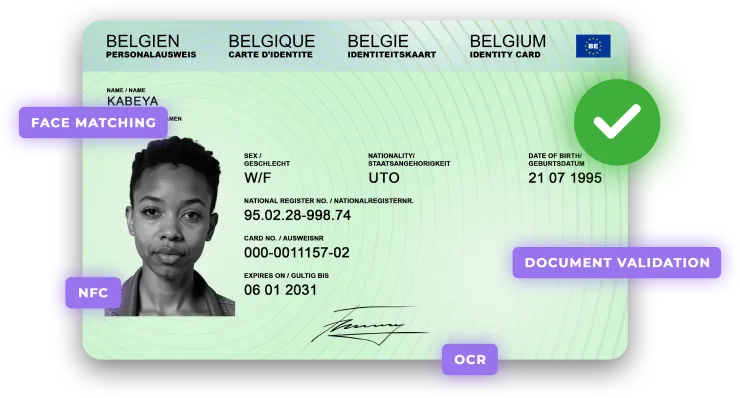 Idenfo can verify the Belgian eID, issued by the Federal Public Service Interior, ensuring accurate data matching and full compliance with Belgian regulatory requirements.