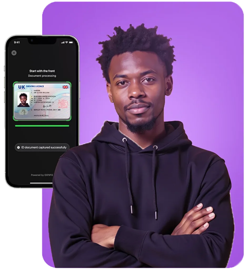 Integrate Idenfo’s Identity Verification, Name Screening and Risk Rating SDKs and APIs for Android and iOS with top-notch security and a smooth user experience, all delivered with minimal coding requirements.