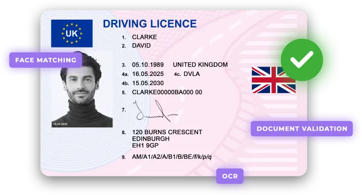 Idenfo can verify the British Driving Licence, issued by the Driver and Vehicle Licensing Agency (DVLA), ensuring accurate data matching and full compliance with UK regulatory requirements.